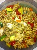 Variation: Grill, broil or bake 1-2 whole skinless, boneless chicken breasts. Use Lawry’s Season Salt or Adobe All Season Salt, garlic & black pepper. Cool chicken. Cut into cubes and add to pasta. The chicken adds protein and makes the dish hardy.