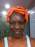 Day two the inquisitive side of me wondered what my skinny little twists would look like if I curled them. I dampened my hair with a spray bottle of water and moisturized with the Define & Hold Gel and the Shea Butter cream and curled bunches of the twists with the rods.