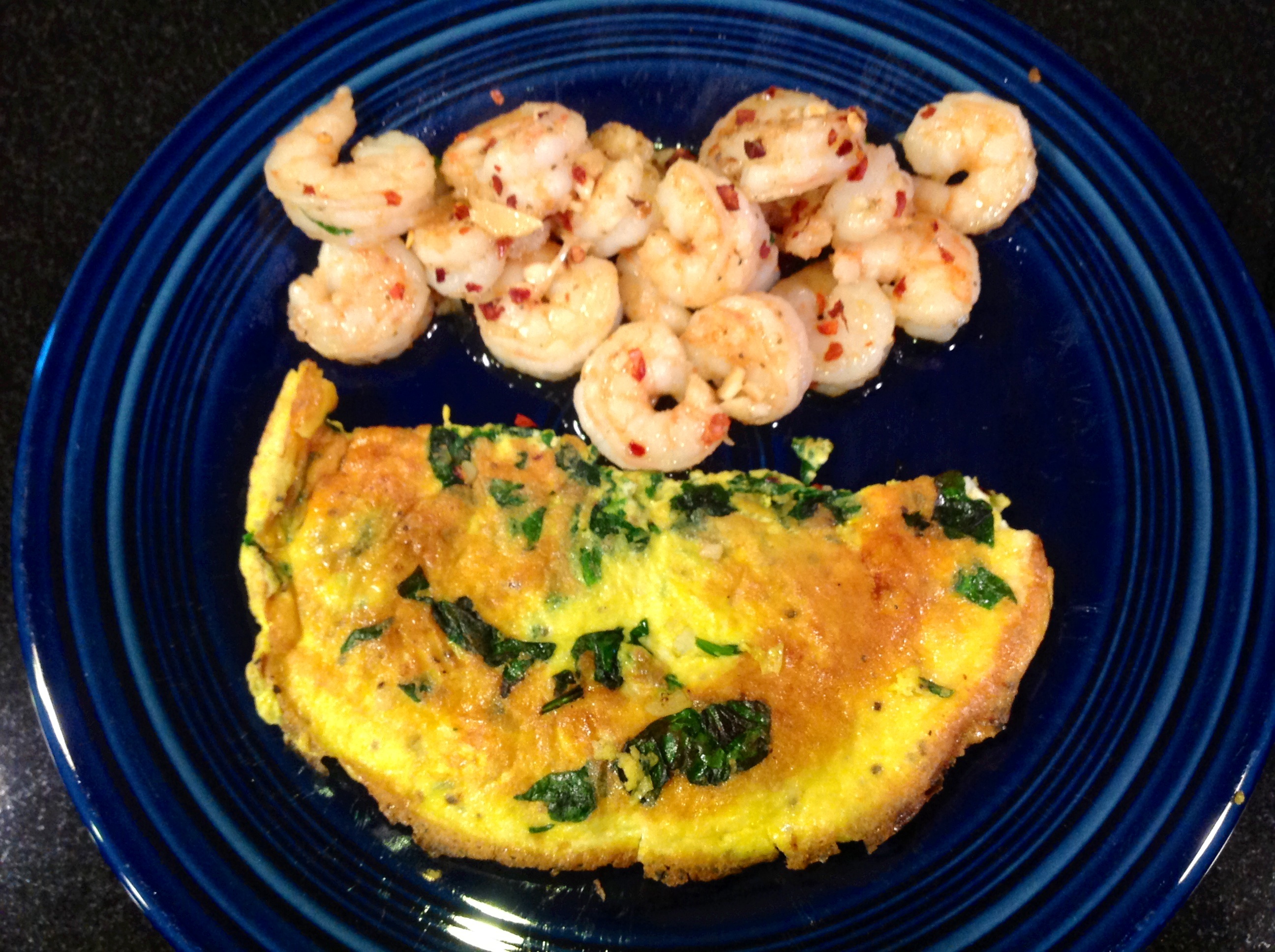 I lapped up the spicy sautéed garlic shrimp and a spinach omelet! I tried my darnest to savor the smell and to enjoy every bite of my breakfast, but I couldn’t resist. I had this delicious food on one of my favorite pretty blue dinner plates. I was supposed to sit at the counter enjoying breakfast like I was at a nice restaurant. Instead, I ended up with the plate in my hand, off the counter, and up to my mouth sucking up the remaining garlic slithering around in olive oil and crushed red pepper. As my son would say, “Mom, you’re going to the chair of shame!” Lol! I am happy for the delayed start; it made my day even better than planned. In addition to eating an awesome breakfast, I also cooked my son and hubby an omelet and even made time to stop at the supermarket to complete my “after work” errands before I even started work. Nice!
