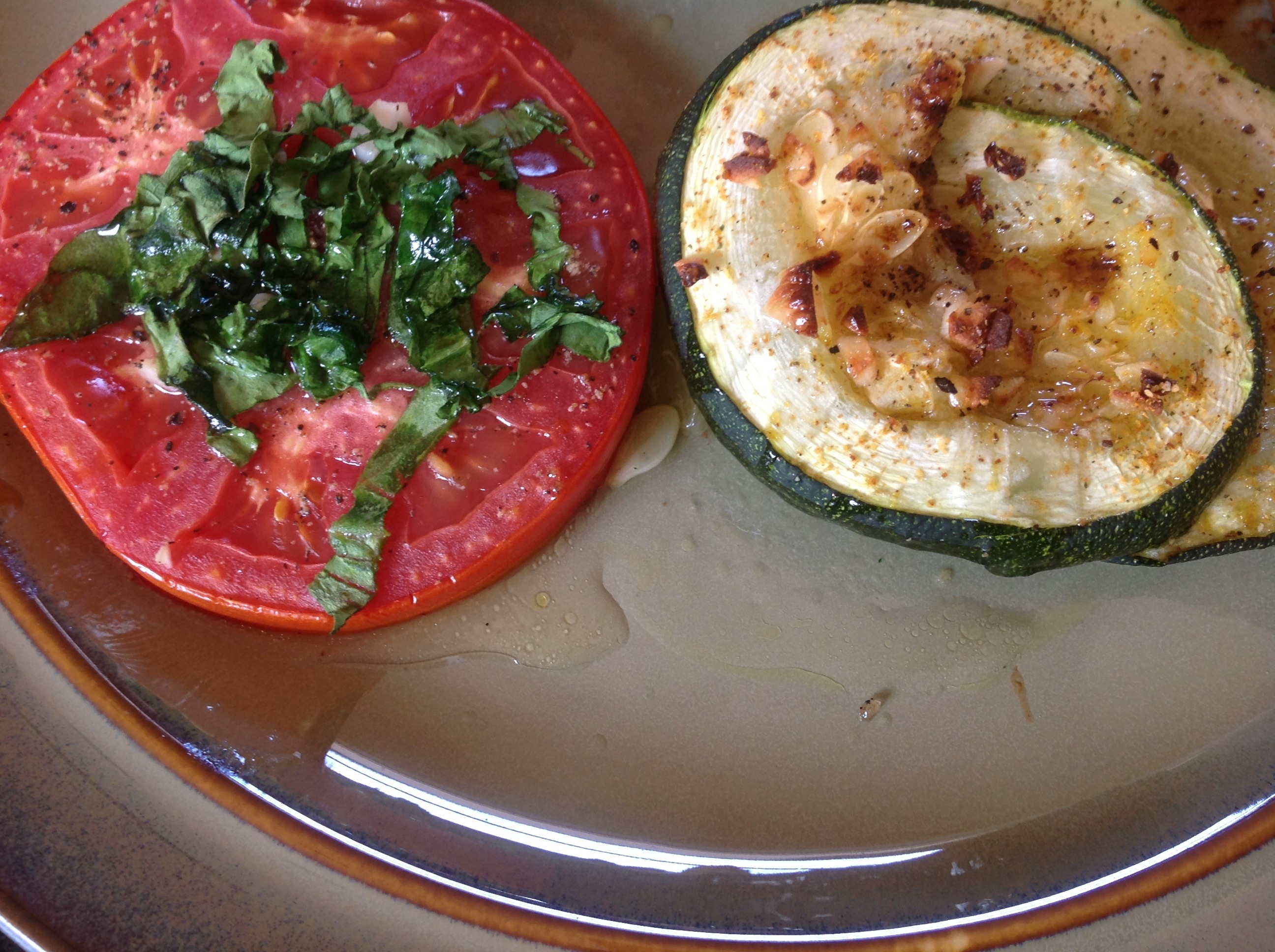 Hurry and eat the veggies while they are warm. The flavor is amazing!! Hubby, my son, and my mom, all especially like the tomatoes.