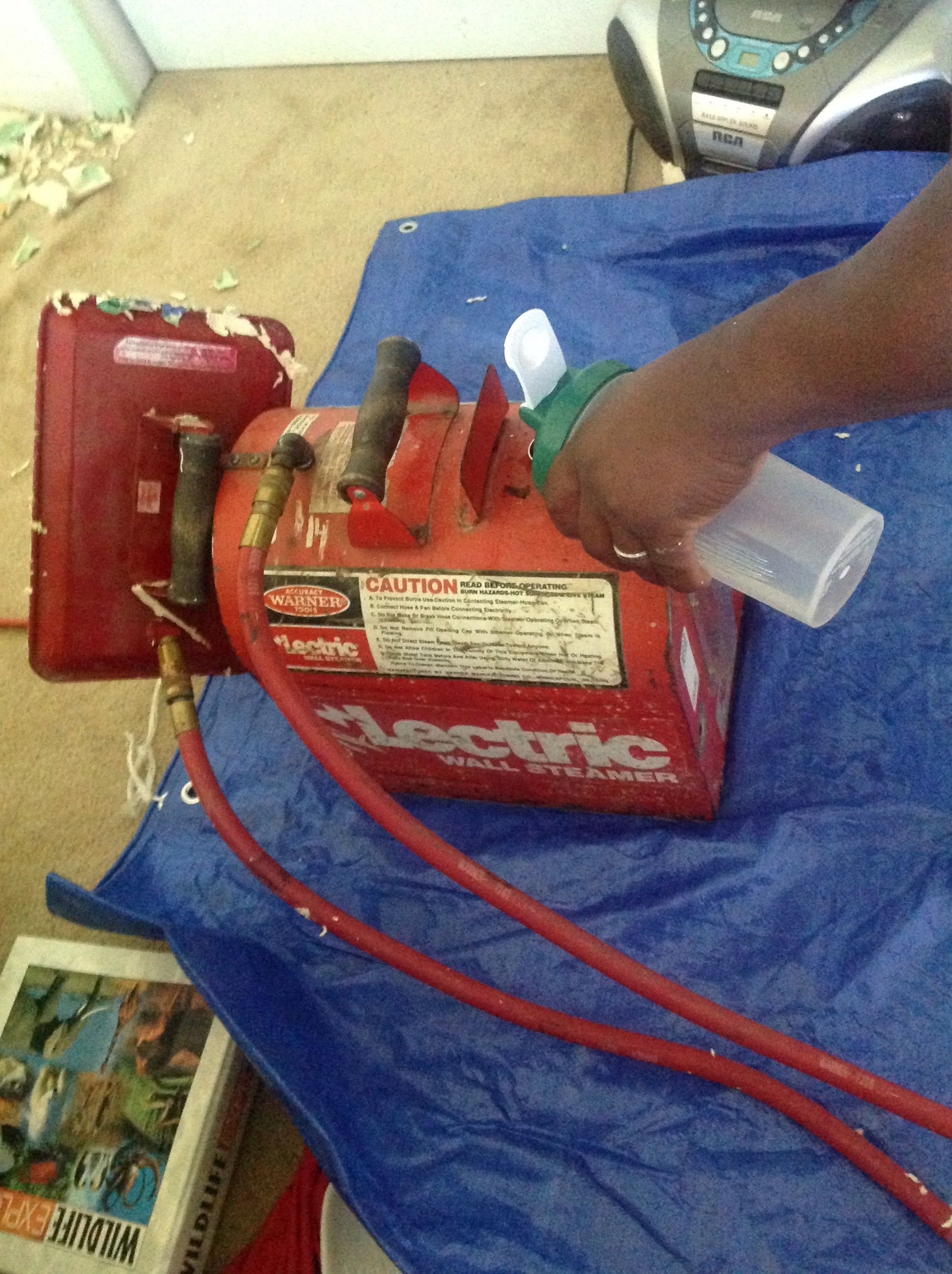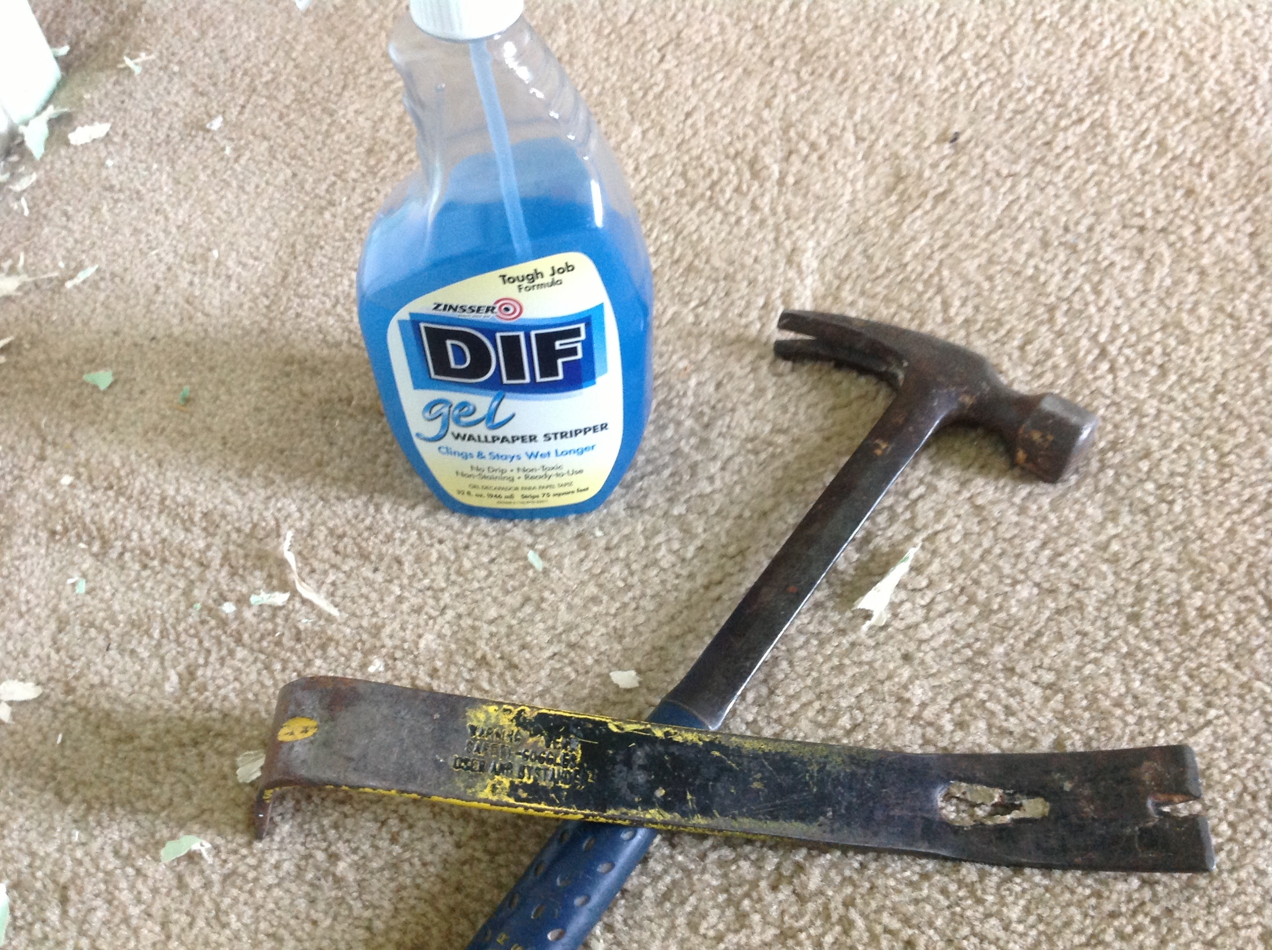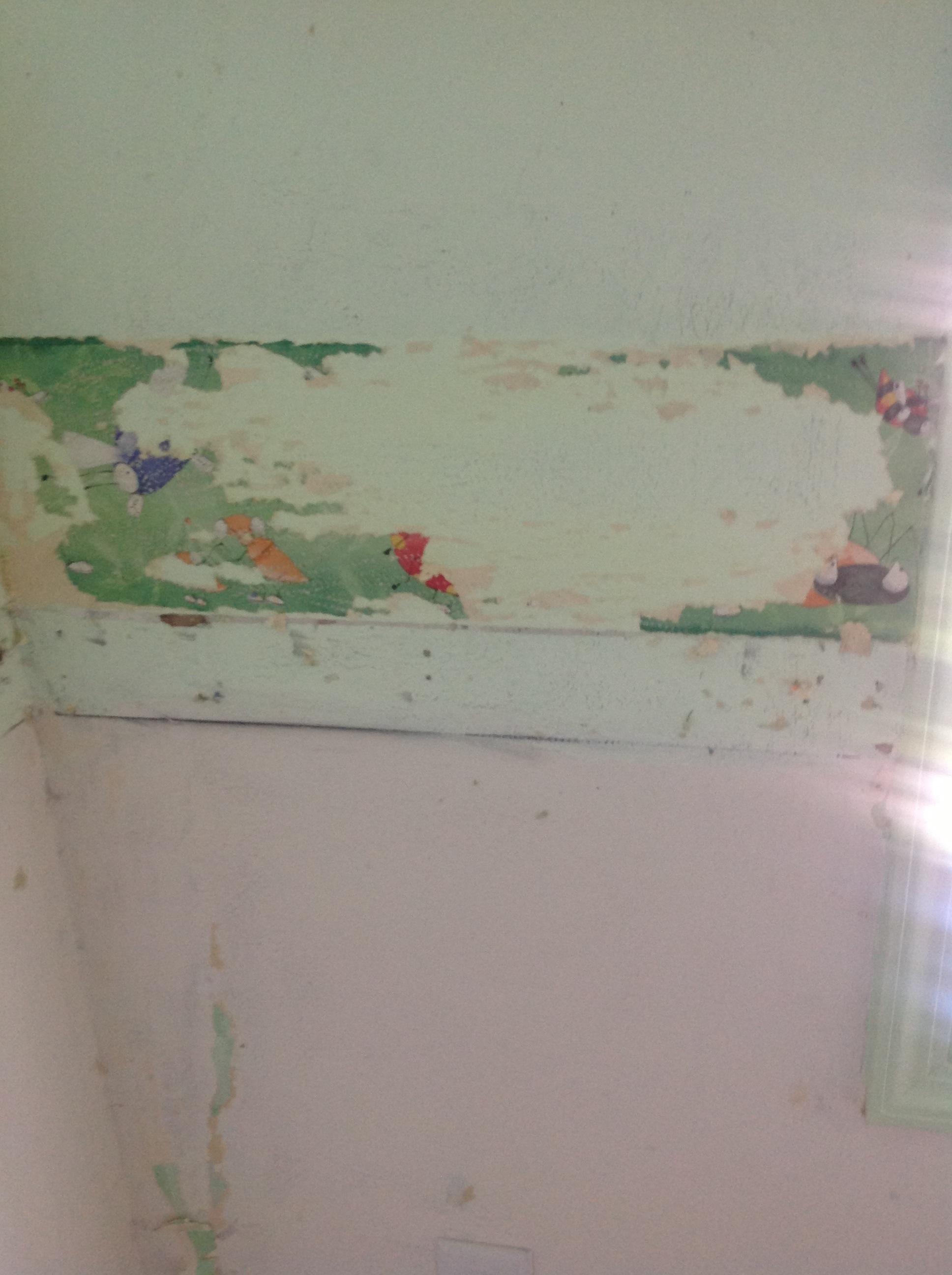 My procrastination delayed this project by two months, but since school starts for both of us in a few weeks, it’s time to tackle his room. Last week, every day after CrossFit, I began to remove the wall paper. Notice I said, “after CrossFit.” Although hubby would have been cool with skipping CF, that was NOT an option for me. He’s hurting, but will thank me later.