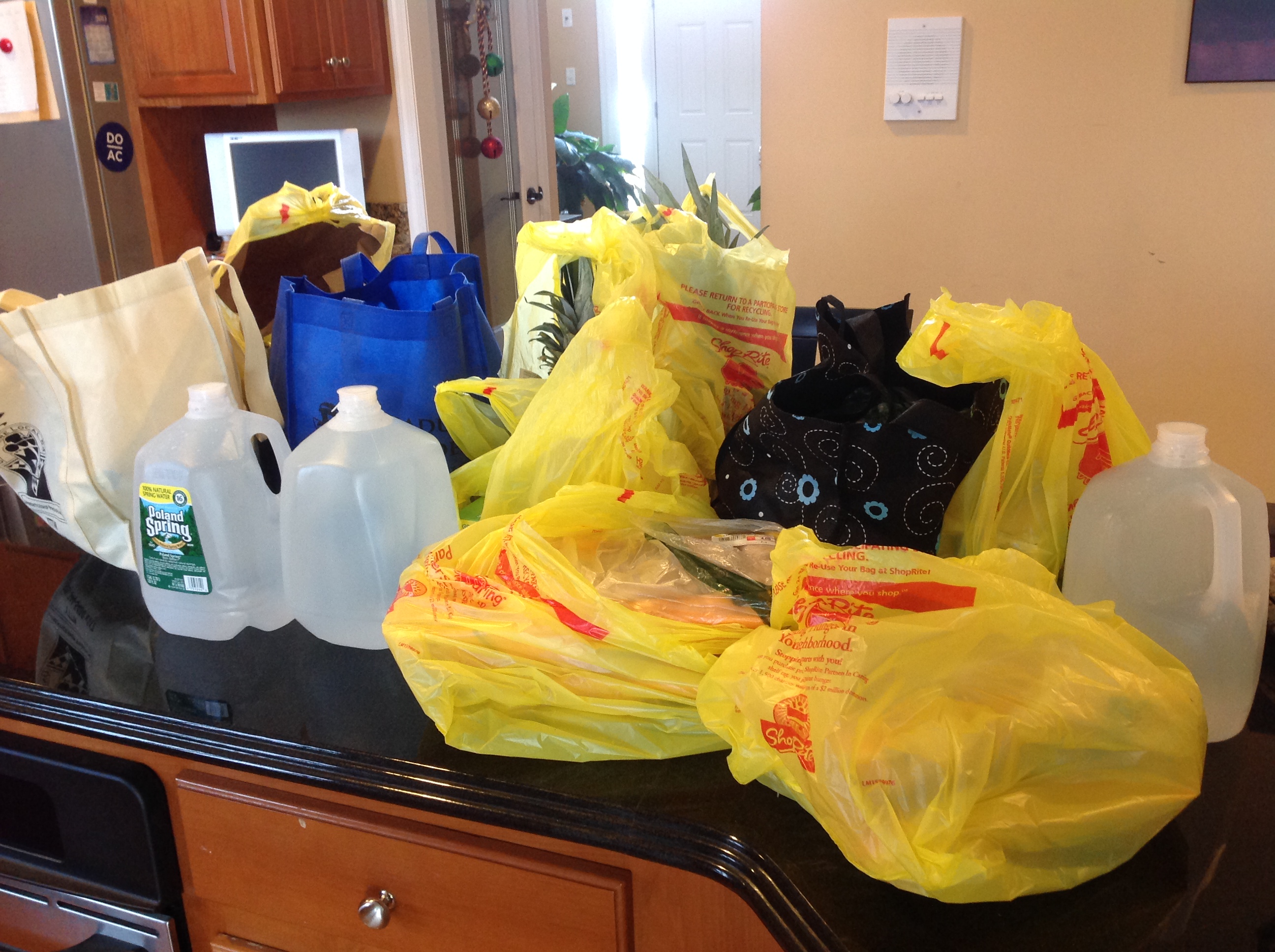 Parts of my “mini” grocery haul still sit on the kitchen counter.