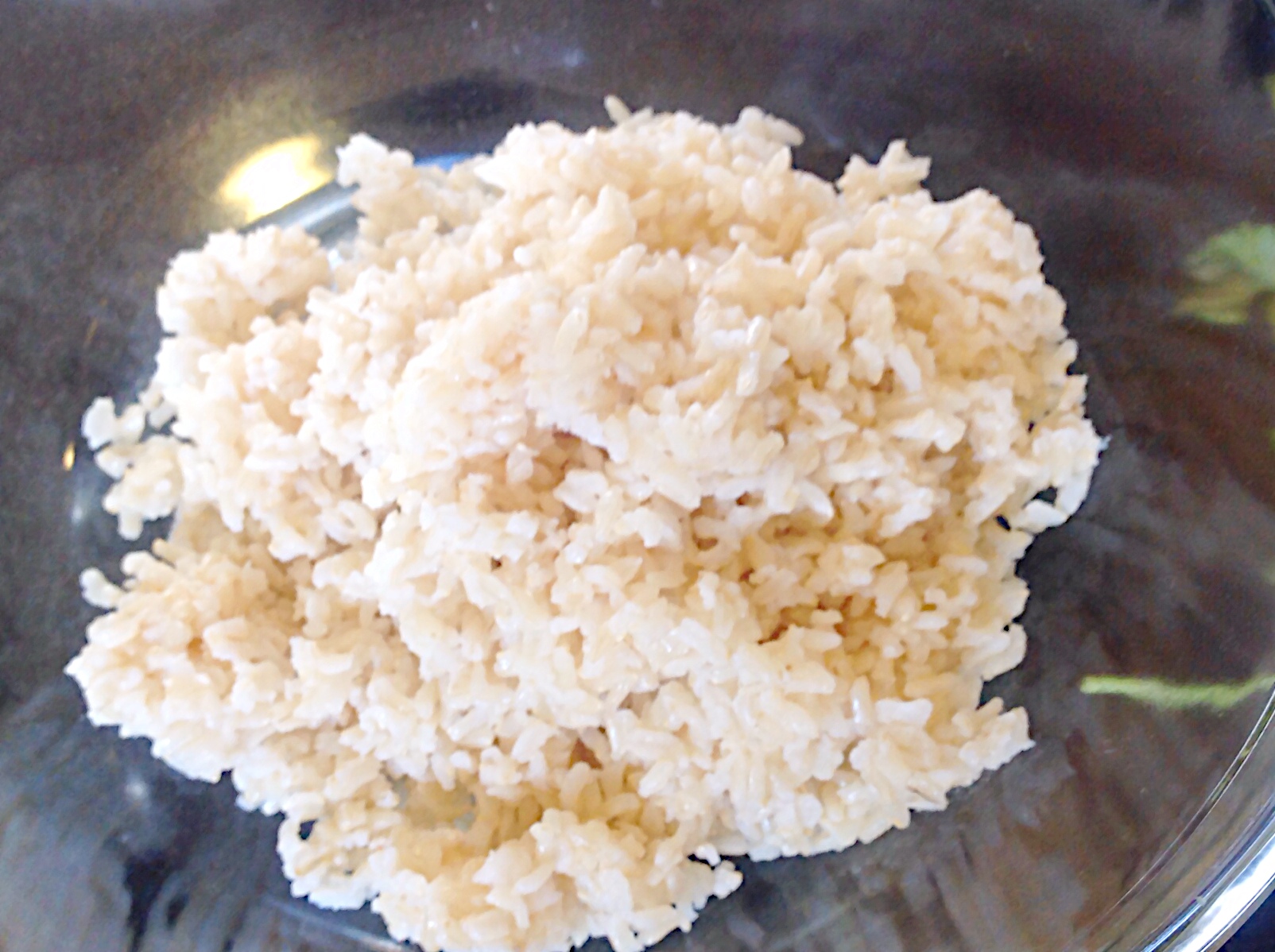 Day old brown rice, but I had to cook a fresh pot of rice.