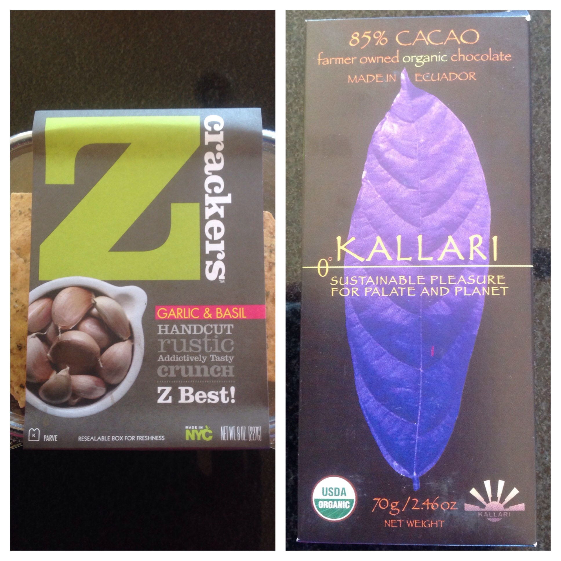 The chocolate is for a fine glass of Cabernet, which I haven’t had in months. Still amazed that I gave up my almost glass-a-day craze. Although I never thought I could give up my daily glass of wine, once I realized the sugar content, I weaned myself off. Heeey! The crackers are perfect when I feel the need to crunch on something.