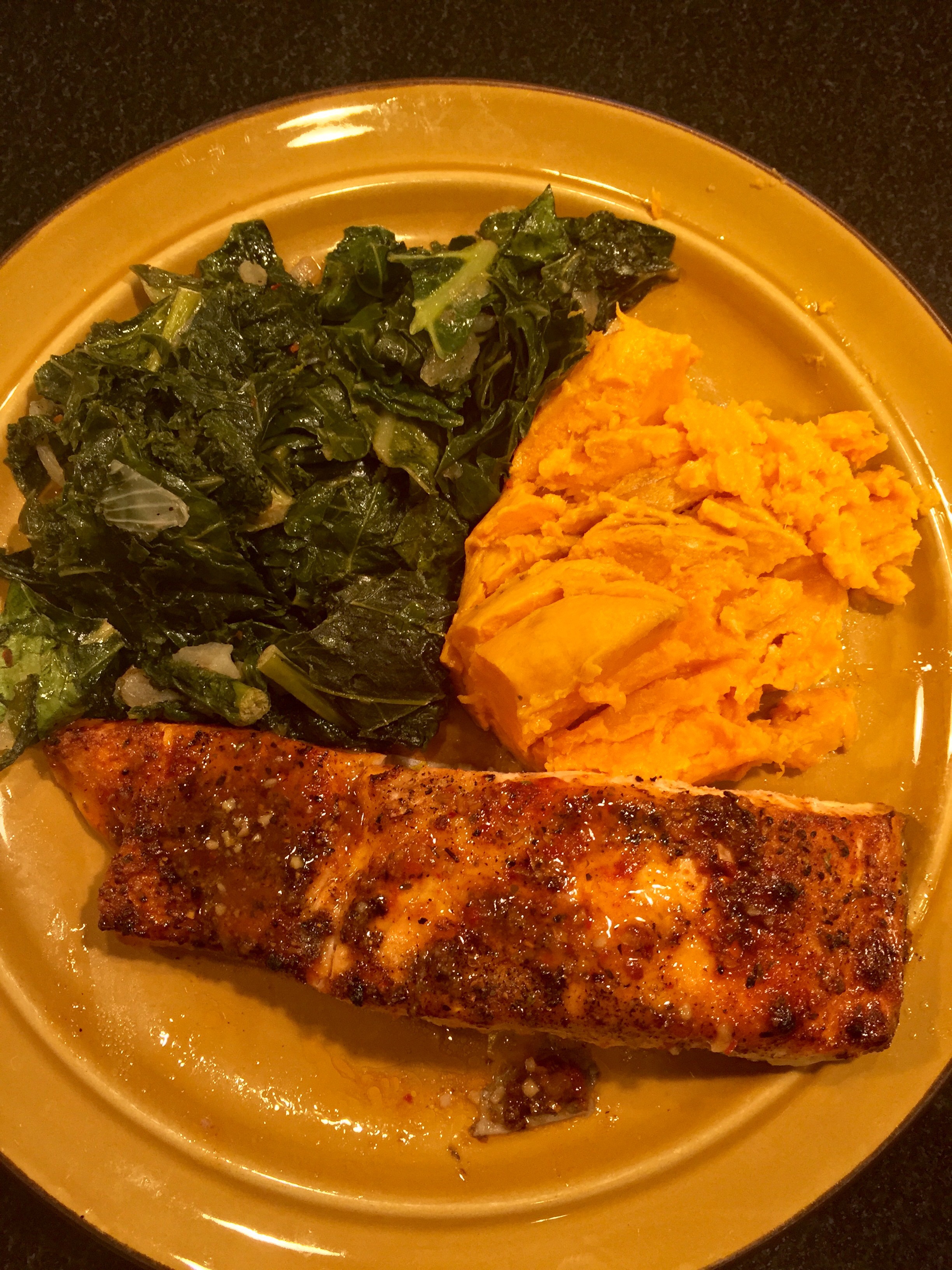 My craving led me to the grocery store. I bought salmon and ground turkey. Last night I cooked the salmon.