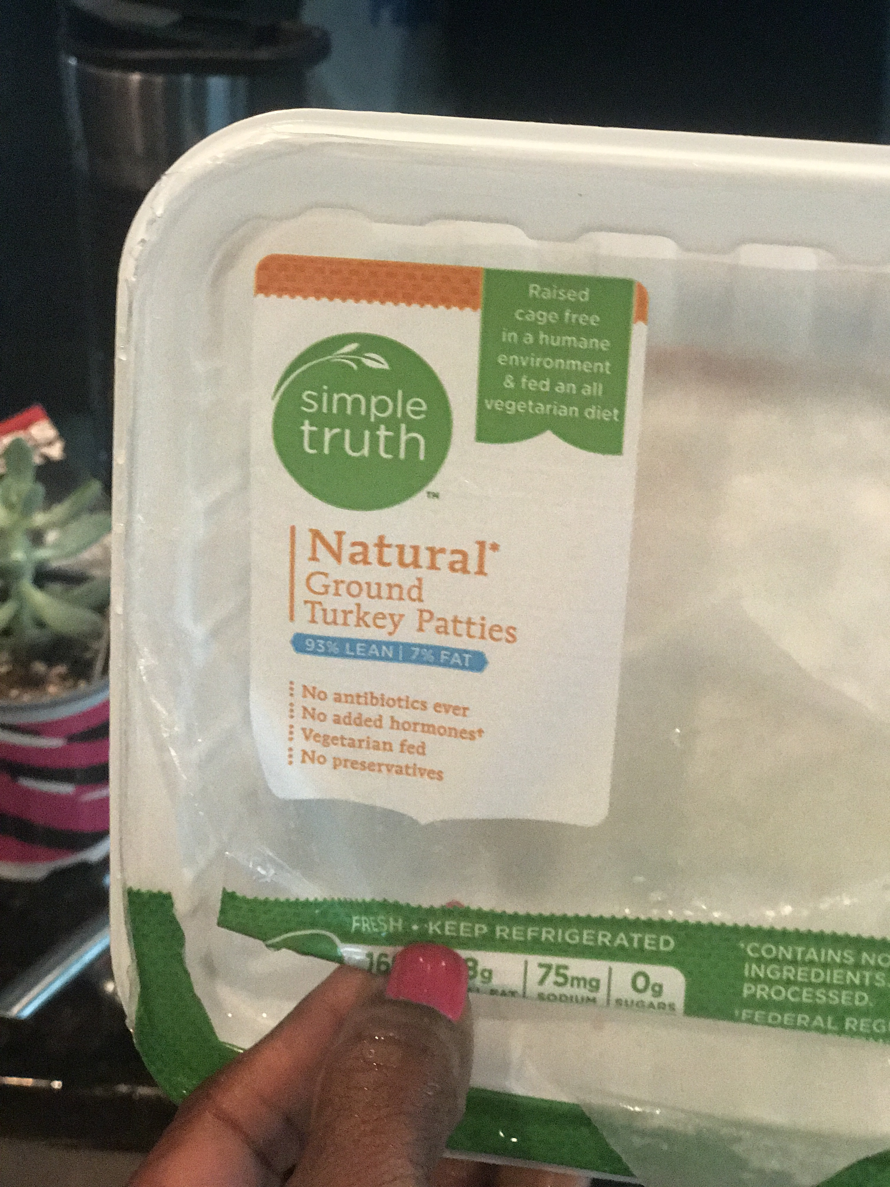 Unseasoned natural turkey patties. I buy them when they are on sale and keep them in the freezer.
