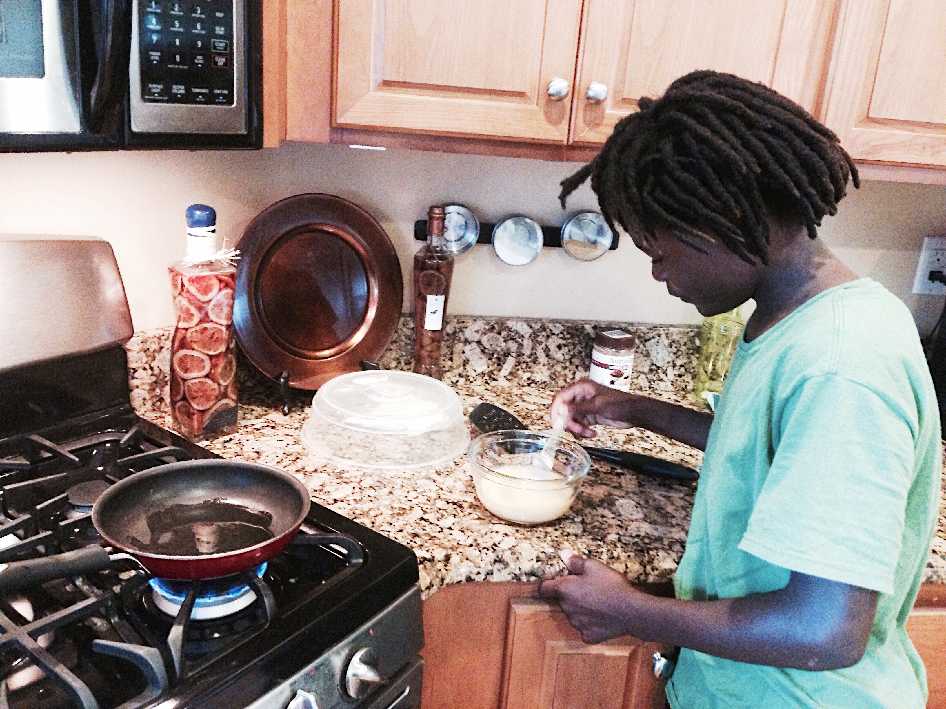 B’Dazzle (my son) wanted to cook his own omelet this morning. Since I was home by 8 o’Clock and knew I wasn’t going out, I could take the time to enjoy the simple pleasure of “supervising” him cook his omelet.