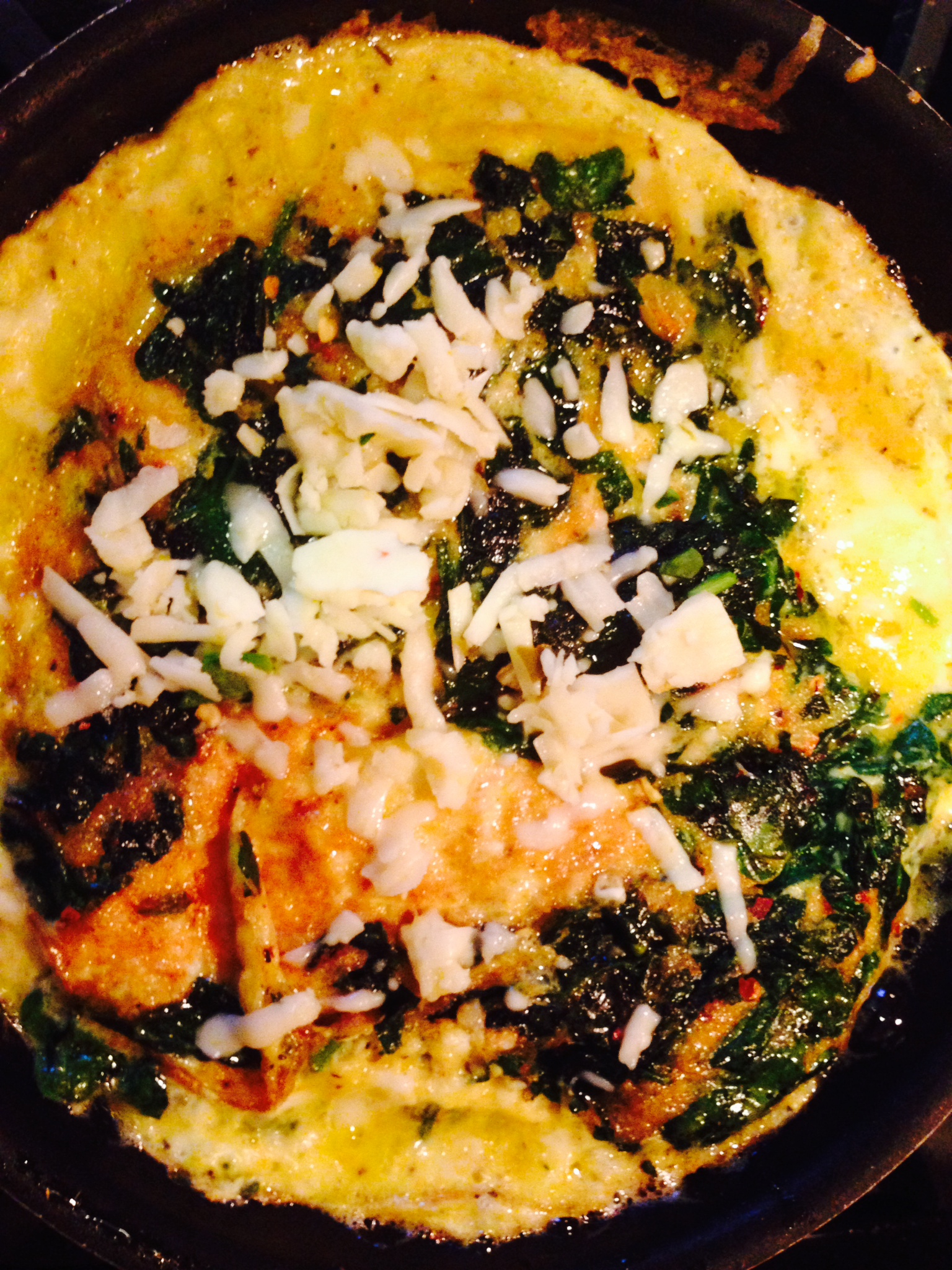 I had an omelet too. Spinach and egg, but I cheated with some shredded pepper jack cheese. It was fabulous and had a nice kick to it.
