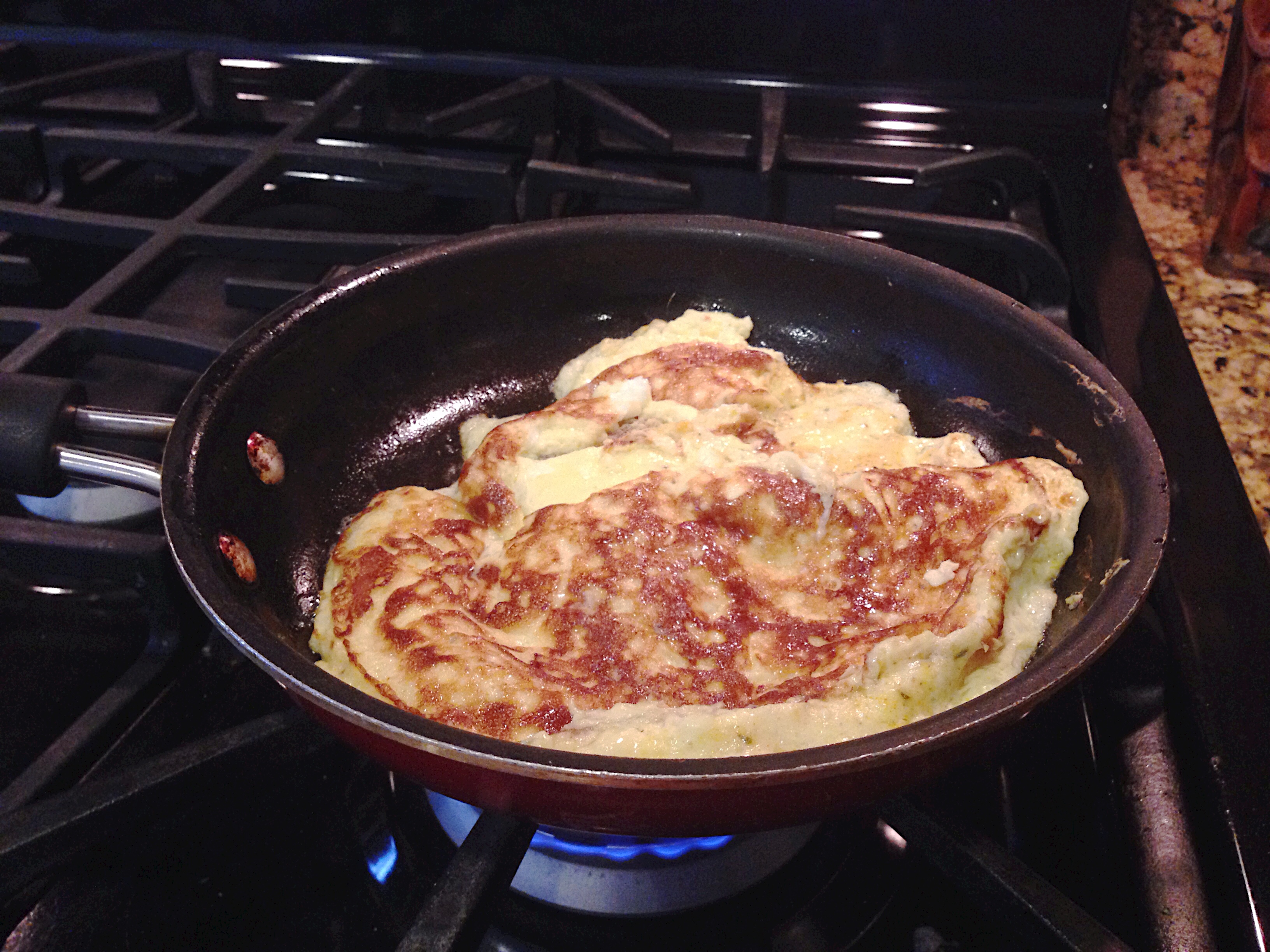 He also likes spinach, tomatoes, and mushrooms in his omelet, but wanted a simple one today.